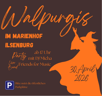 Freut euch auf die Walpurgis-Party ab 17 Uhr mit DJ Micha und der Live-Band „Friends for Music“. Genießt einen stimmungsvollen Abend voller Musik, Tanz und guter Laune.